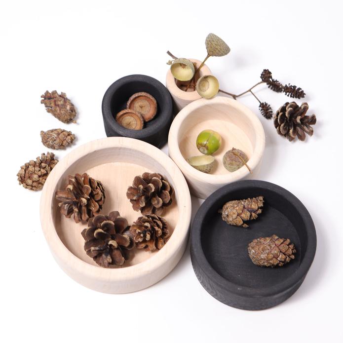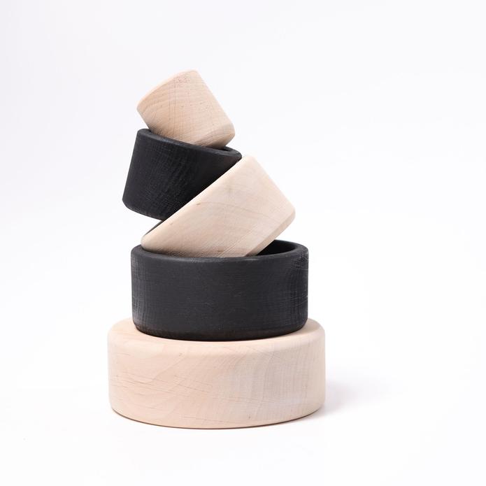 The Set of Bowls is a versatile toy for the children: they can stack and sort the bowls by size and colour, build with them, use it as cooking pot or plate, collect treasures etc. The Set of Bowls is recommended by »spiel gut« (good toy guide).